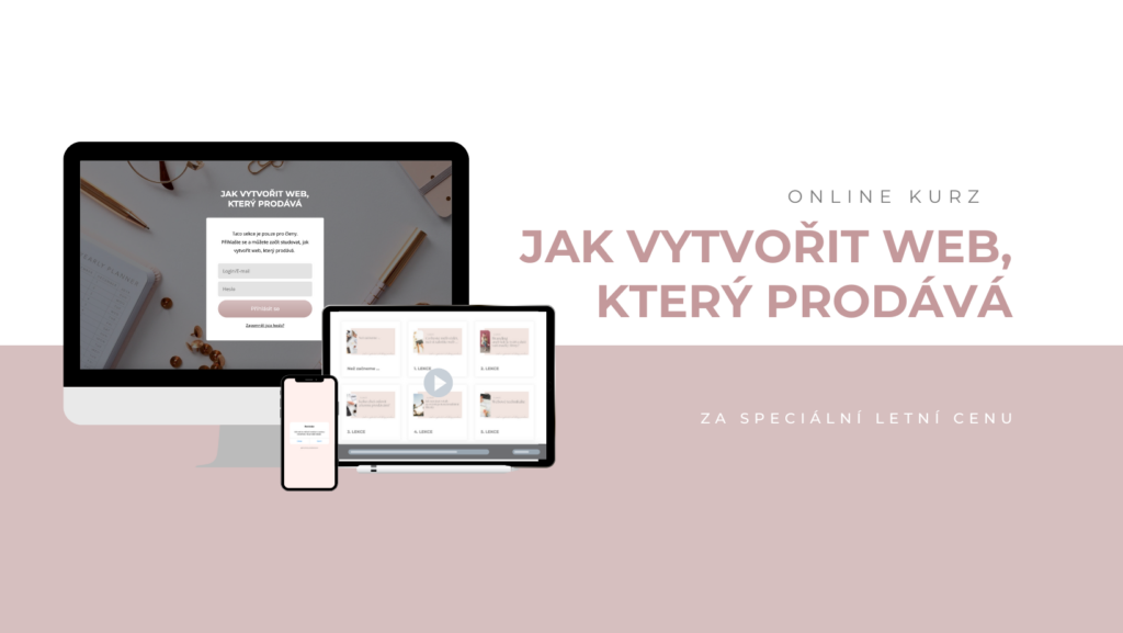 To všechno jsem pro Vás připravila v online kurzu JAK VYTVOŘIT WEB, KTERÝ PRODÁVÁ a takové malé P. S. tohto e-mailu je, že kurz je právě teď dostupný za speciální letní cenu.